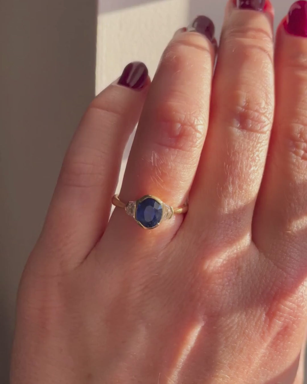 A vivid, mysterious blue that demands all attention. The soft curves of the Ceylon sapphire complimented with the intricate cadillac cut diamonds, nestled perfectly into the sides.