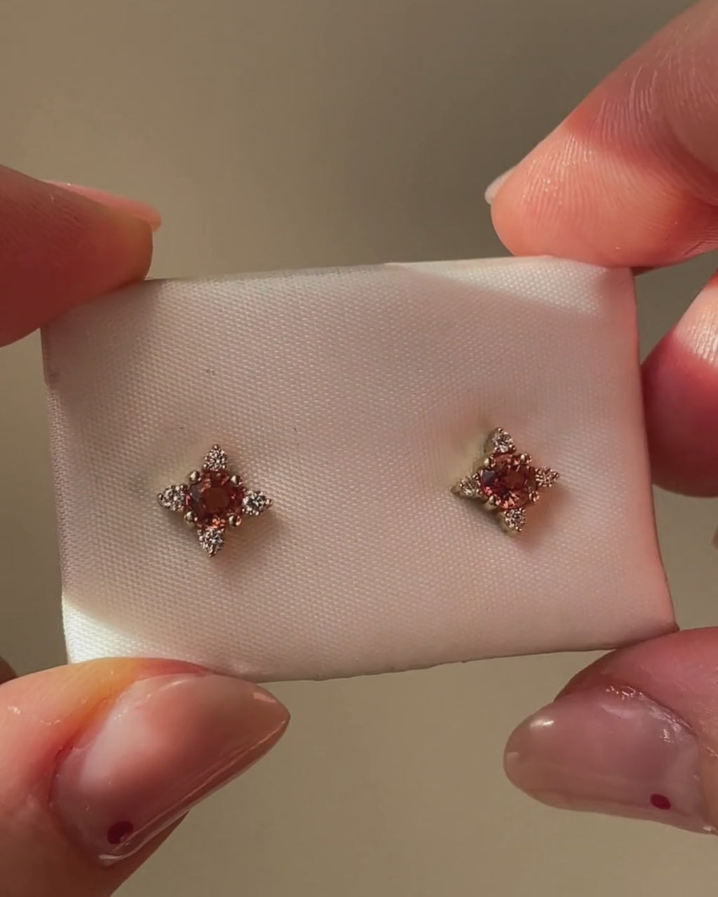 A wonderfully versatile stud that marries together a brilliant burst of colour with the delicate sparkle of white diamonds, claw set in 9k white or yellow gold. These earrings make the perfect gift to be worn and loved everyday - the only question is which colour to pick.