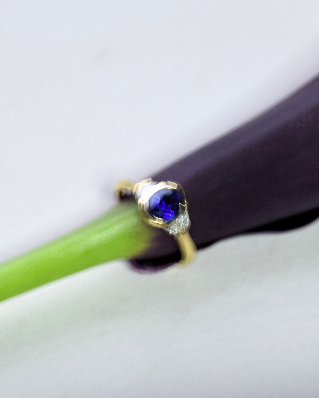 A vivid, mysterious blue that demands all attention. The soft curves of the Ceylon sapphire complimented with the intricate cadillac cut diamonds, nestled perfectly into the sides.